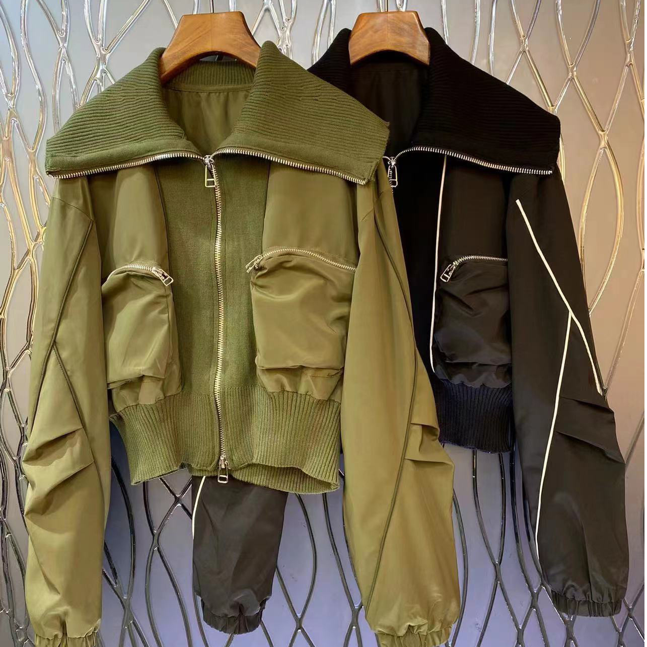 Women's casual jacket crafted from cotton in black or army green. Features a classic lapel design, zippered pockets for secure storage, and long sleeves perfect for layering. Available in sizes S, M, and L. European and American street fashion styling that effortlessly elevates any casual wardrobe.