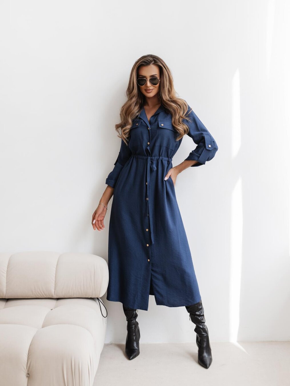 Elevate your everyday wardrobe with this versatile lapel shirt dress. Available in four sophisticated shades—black, blue, coffee, and khaki—it combines elegant styling with practical long sleeves and button detailing. The patchwork design adds contemporary flair, while the polyester fabric ensures comfort and easy care. Perfect for casual outings or dressing up with accessories.