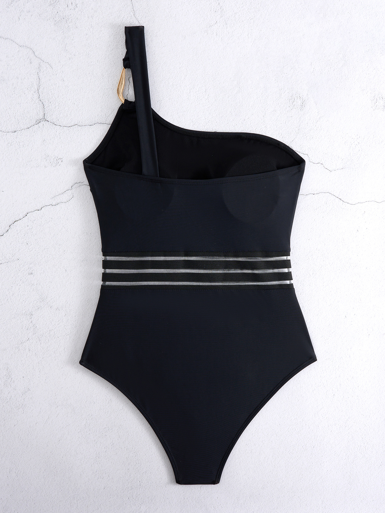 This sleek black one-piece swimsuit features a solid color design and a sexy style, perfect for swimming and water sports. Made entirely from high-quality polyester fiber, it offers high elasticity for a comfortable fit. Available in sizes S through XXL, it’s sleeveless with a smooth polyester lining, making it ideal for adult women looking for both style and performance.