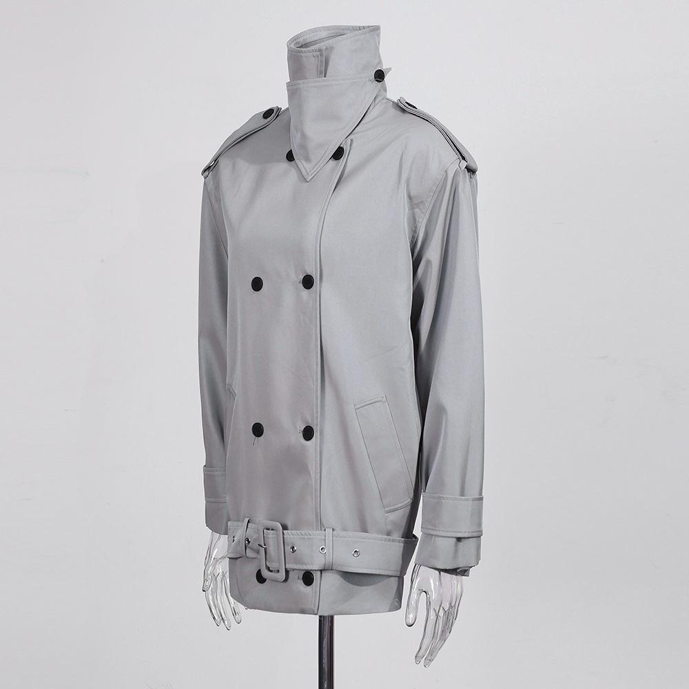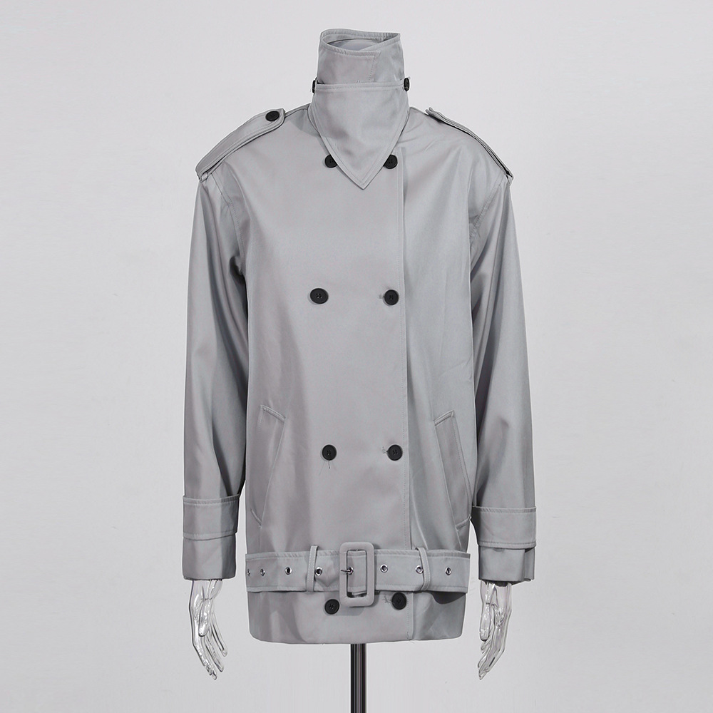 Womens Stylish Double-breasted Cropped Trench Coat