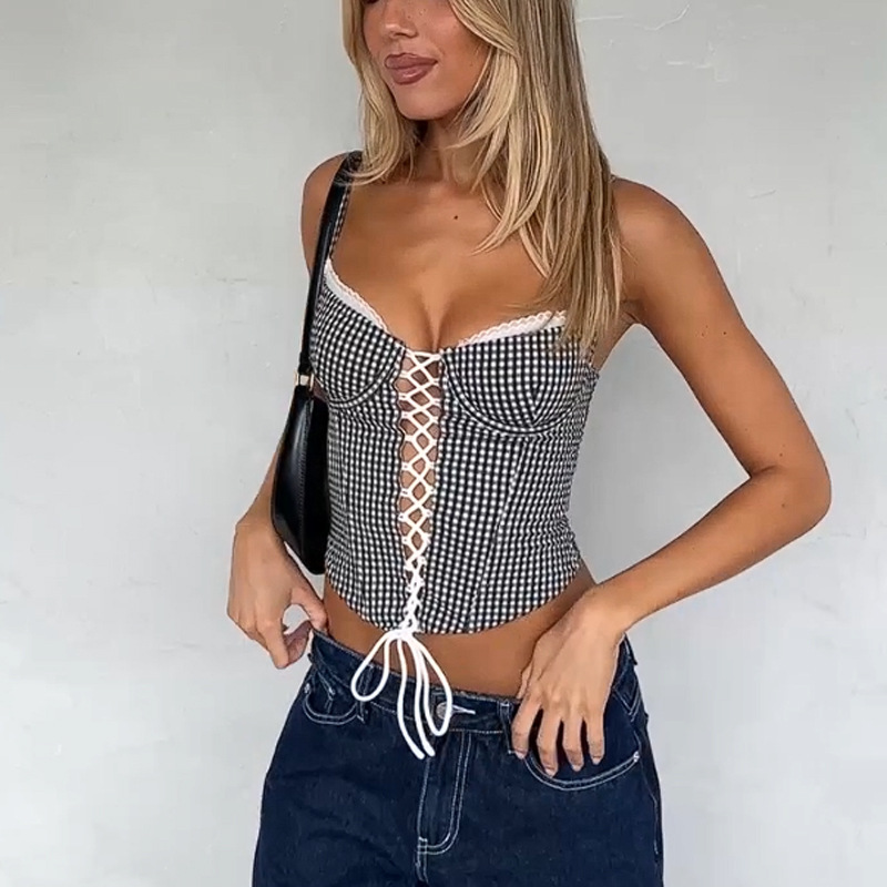 Elevate your wardrobe with this striking black plaid camisole, designed to flatter with its slim silhouette and contemporary appeal. Crafted from polyester with subtle stretch for comfortable movement, this short-length piece pairs effortlessly with layered outfits or stands alone as a bold statement. Available in sizes S, M, and L, it's the versatile essential every modern wardrobe deserves.